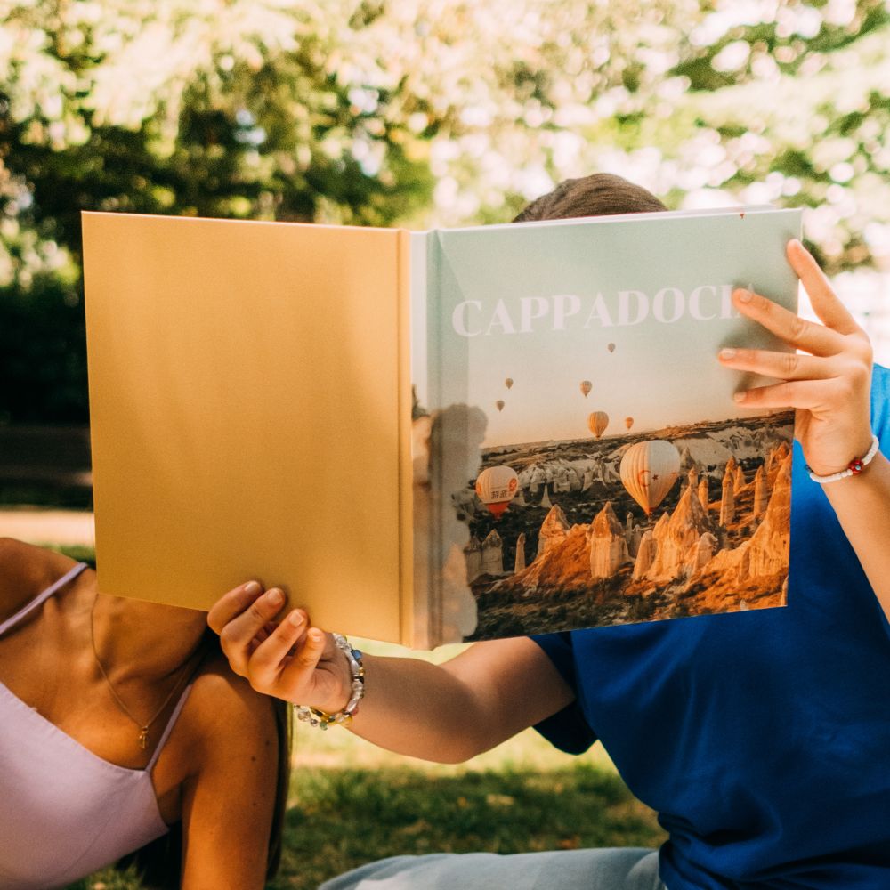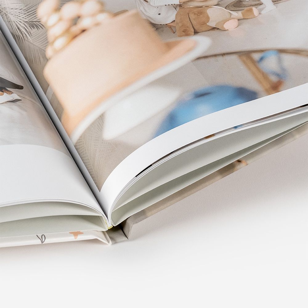 Os Álbuns Press da Dreambooks possuem capas duras feitas de cartão rígido, que são totalmente personalizáveis. As capas são tradicionalmente fotográficas, permitindo a personalização completa com fotografias, textos ou cliparts na capa, contracapa e lombada. A impressão inclui uma laminação matte, que confere um toque e impacto premium, elevando a aparência e a durabilidade do Foto Livro.
